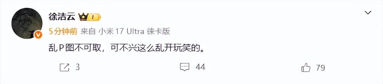 随后东升国际APP,小米集团董事长特别助理、战略市场部副总经理@徐洁云发文:乱P图不可取,可不兴这么乱开玩笑的。